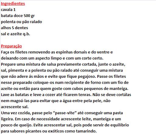 Filete de cavala com puré de batata doce