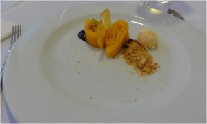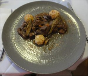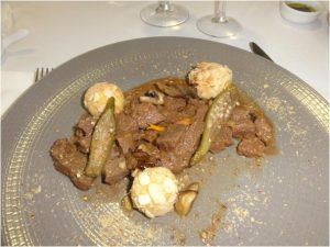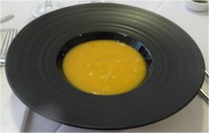 O Menu foi composto de uma Entrada, depois uma Sopa de Legumes, Vitela Estufada com Amêndoa e por fim uma Torta de Laranja.