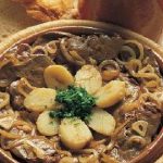 Depois de cozidas, descasque-as e corte-as em dados ou ás rodelas. Sirva o fígado na travessa, acompanhado das batatas, e sobre o fígado deite a cebola e umas gotas de sumo de limão.