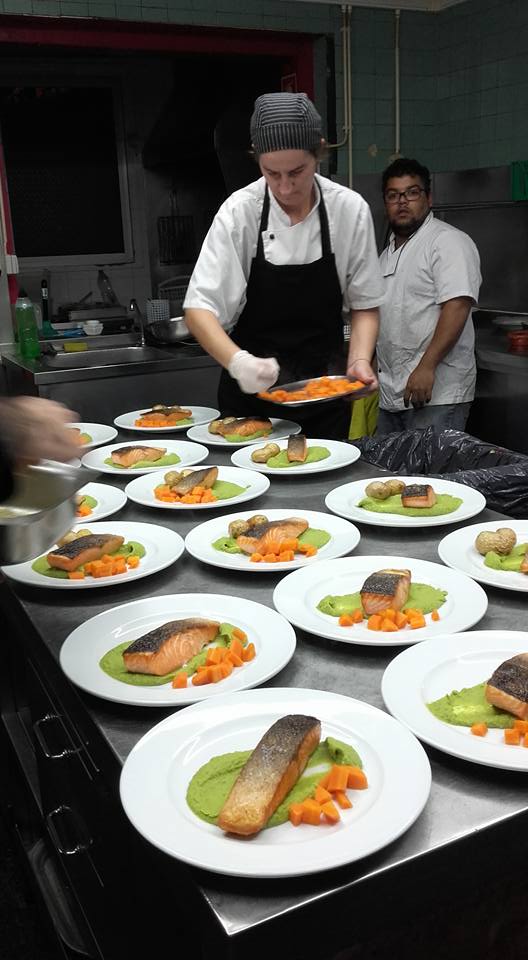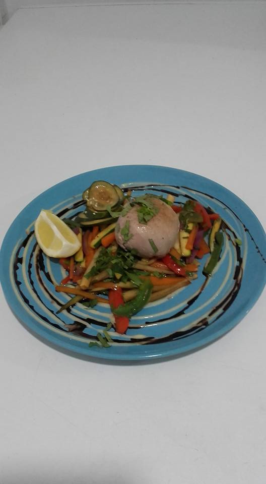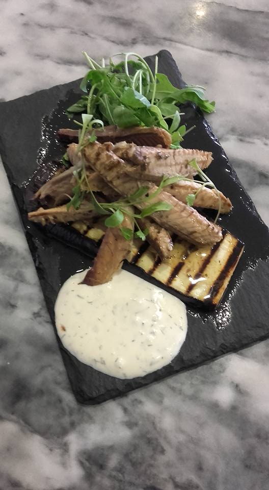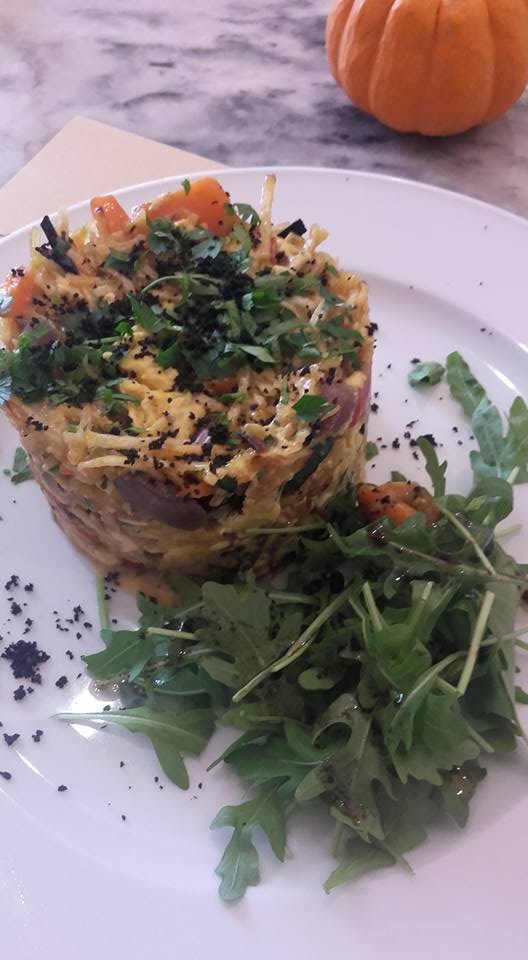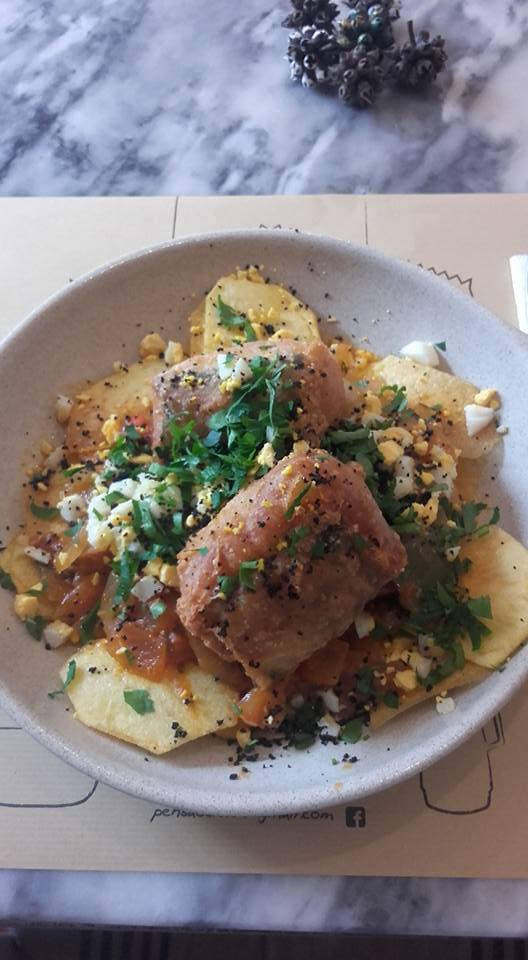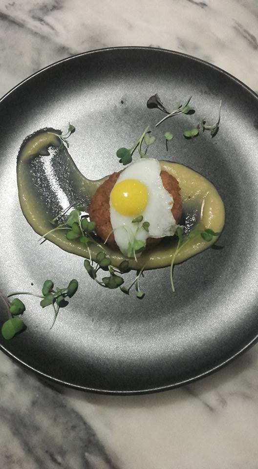 - hambúrguer de alheira com puré de maçã e ovo de codorniz