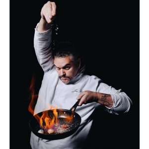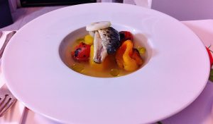 Empratar em prato fundo, começando pela água de tomate, dispôr as batatas ao alto, tapar com um pouco de chalotas às rodelas finas, ladear com o tomate flamejado e o pimento pádron.