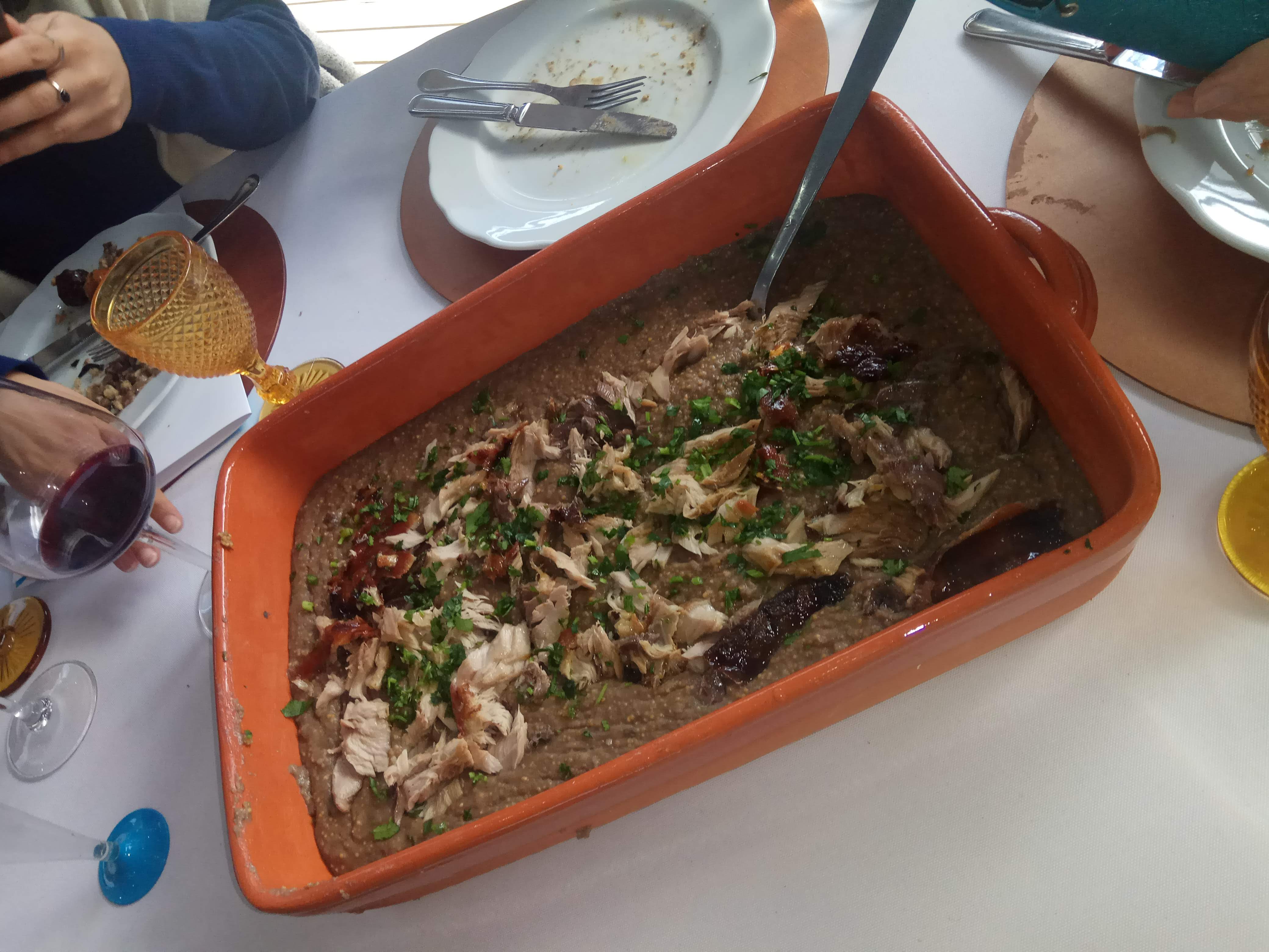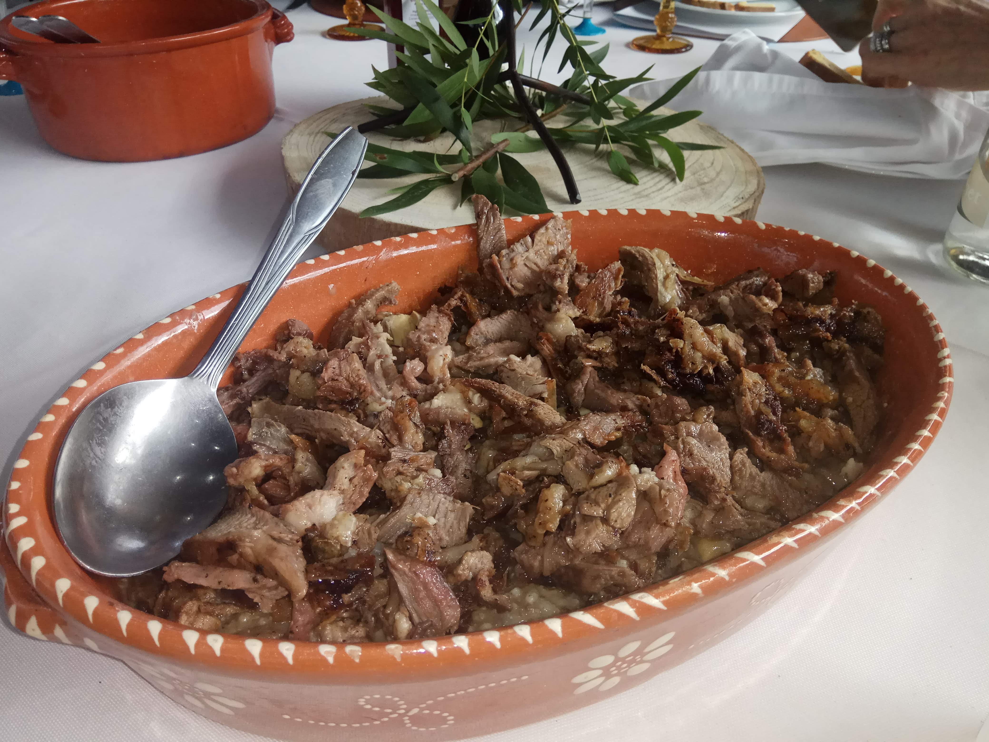 - O Bode assado no espeto com cabidela de miúdos e grão-de-bico pelo Chef Rodrigo Castelo [40.º Aniversário do Festival de Gastronomia de Santarém]