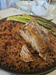 Entre os vários pratos provados, houve um que ficou na memória. O cachaço de porco preto, cozinhado lentamente no forno, estava irrepreensível. Suculento, intenso, com aquela profundidade que só a cozinha de tempo consegue dar. Foi daqueles pratos que justificam a viagem, mesmo antes de se falar dos vinhos.