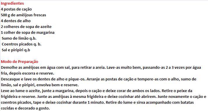 Harmonizado com Cação de coentrada com amêijoas, receita Teleculinária