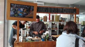 A Quinzena terminou em beleza com um Live Cooking “Sabores do Oeste com Aguardente DOC Lourinhã” no Mercado Municipal da Praia da Areia Branca, no qual o Chef Ricardo Ferreira confecionou uma ementa com produtos locais e a Aguardente DOC Lourinhã.