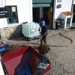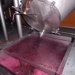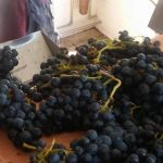 Posteriormente os bagos de uvas são colocados em lagares, que são tanques de pedra abertos com uma altura aproximada de sessenta centímetros, ou cubas de inox, onde são esmagadas de forma a romper a película da uva e libertar o seu sumo, denominado de mosto.
