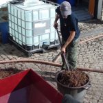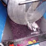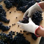 É necessário separar os bagos de uvas das partes lenhosas do cacho ou canganho, sendo este o processo de desengace.