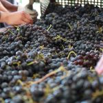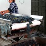 Na adega as uvas são avaliadas para garantir a sua integridade e arremessadas no tegão da receção.