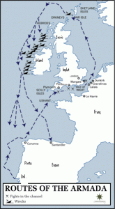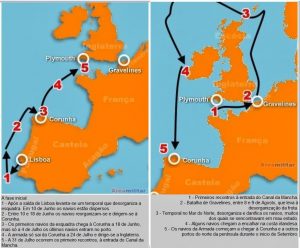 Mas desgraça maior foi, de facto, a destruição da Invencivel Armada, no mar da Mancha, em 29 de Junho de 1588, com a ajuda de temerosa tempestade, pelo flibusteiro – nobilitado e feito almirante por Isabel I de Inglaterra – Francis Drake.