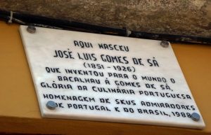 Filho de um comerciante do Porto é a José Luiz Gomes de Sá Júnior a quem se deve a receita de Bacalhau à Gomes de Sá, que é em tudo semelhante à confeccionada actualmente, utilizando-se praticamente os mesmos ingredientes, com excepção do leite.