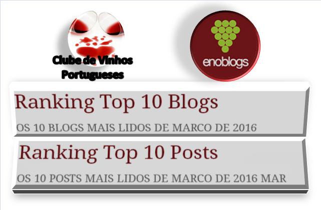 Mais um mês e o Clube de Vinhos Portugueses posicionou-se em 2º lugar do Top 10 entre as páginas mais lidas para a Enoblogs, assim como o apontamento sobre a Quinta Valle do Riacho foi o 7º artigo mais lido ao longo do mês de Março, entre os milhares escritos igualmente por outros blogues ao longo do mês passado. Grato pelas vossas visitas.