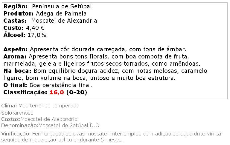 apreciacao Adega de Palmela Moscatel de Setúbal D.O.
