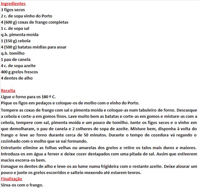 Harmonizado com Coxas de frango com figos e canela;FONTE DA RECEITA: Pingo Doce