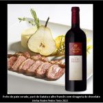 Harmonizado com Raia confitada em azeite virgem extra, tomate seco, pistácio, favas salteadas e creme de batata, do Chef Vítor Sobral