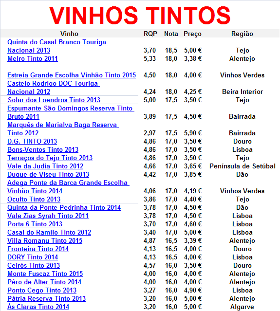 LISTA DOS VINHOS APRECIADOS COM OS RESPETIVOS LINKS