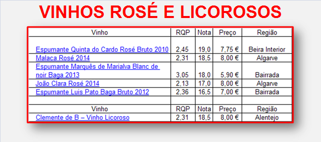 | Malaca Rosé 2014 | 2,31 | 18,5 | 8,00 € | Algarve |