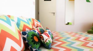 Compsto por um quarto duplo especial com terraço (Yellow Room), dois quartos duplos Standard (Orange & Purple Room) e um dormitório para 4 pessoas ou casal com dois filhos, existe berço em caso de necessidade.