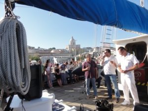 Dori, bacalhoeiro, bacalhau e vinho bem poderiam ser o mote para o evento de ontem. Contrastando com a Doca de Santa Apolónia, o ar e clima sob ponto de vista térmico eram bem mais aprazíveis que em terra.