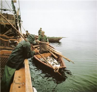 Longas horas, trabalho pesado, grande fadiga, espaço de trabalho apertado, extremos de tempo e mares em mudança repentina eram os aspectos mais previsíveis da arte. O que em terra seria uma falha sem problema, várias vezes era um erro fatal sob estas condições. Ocasiões fatais não eram limitadas ao erro humano, pois o alterar repentino dos mares e tempo podia trazer o desastre ao homem-dos-dóris mais diligente.”