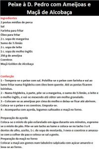 - Peixe à D. Pedro com Ameijoas e Maçã de Alcobaça