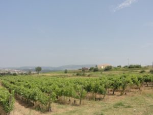 Pelo que se pode avaliar pelas fotos, as vinhas bem cuidadas, boa folhagem recetora de luz, arinto já um pouco avançado (estamos em início de julho), mais ainda a fernão pires, sendo que as tintas saem agora da floração e começa a transformar-se nos primeiros bagos em crescimento, ainda com menos expressão.