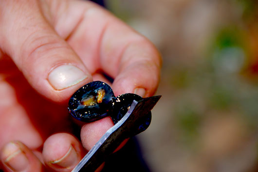 Na segunda (pigeage), utiliza-se uma ferramenta chamada pigeou, um largo disco com longo cabo, que promove a imersão da massa sólida na parte líquida. Em alguns casos, abdica-se das ferramentas para utilizar o próprio pé humano, como no caso da pisa a pé, nos tradicionais vinhos do Porto.