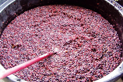 - Temperatura e tempo de fermentação: Via de regra, quanto maior a temperatura de fermentação, maior será a extração dos componentes das cascas. Assim, logicamente, quanto maior o tempo de contato do mosto com os sólidos das uvas, maior será também a extração dos taninos. Com o calor, as células vegetais rompem-se, liberando mais facilmente todos os seus extratos. Neste caso, a precaução é fundamental: o calor excessivo pode matar as leveduras, acelerar reações químicas, inclusive da acetificação (avinagrar) e provocar a volatilização de muitos compostos aromáticos.